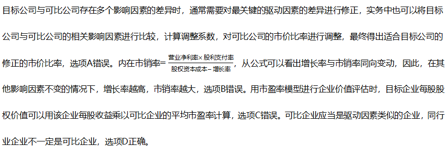 A.當(dāng)目標(biāo)公司與可比公司存在多個(gè)影響因素的差異時(shí),只需考慮差異影響最大的因素進(jìn)行修正