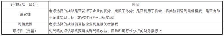 【答案解析】 本題考查評估戰(zhàn)略備選方案?!皩殬啡闃I(yè)在評估戰(zhàn)略備選方案時,主要考慮選擇的戰(zhàn)略能否被股東、消費者和員工所認可”體現(xiàn)的是可接受性標準。