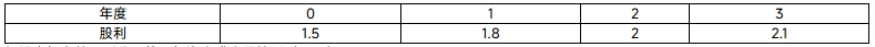 某上市公司剛剛支付上一年度的股利,金額為1.5元/股,當前股票價格為30元。分析師預測該公司未來股利增速遞減,并從第3年起始終保持5%的增速,具體如下表所示: