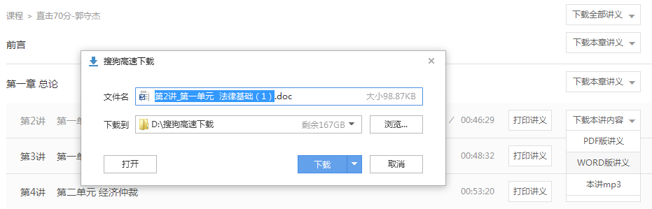 ④每個選擇模塊,均提供PDF版本講義下載和WORD版本講義下載,學(xué)員可根據(jù)需要進行選擇(此處以講次講義為例);