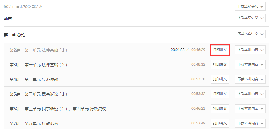 ③進入課程后,學(xué)員可根據(jù)自己的需要,選擇【下載全部講義】、【下載本章講義】、【下載本講內(nèi)容】講義;