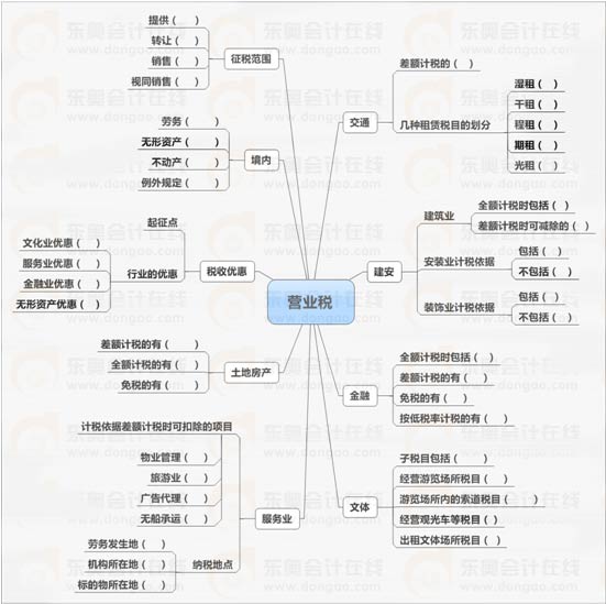 2013年注會(huì)考試《稅法》第四章導(dǎo)圖解析:營(yíng)業(yè)稅