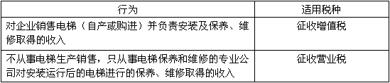 【提示】電梯屬于增值稅應(yīng)稅貨物的范圍,但安裝運(yùn)行之后,則與建筑物一道形成不動(dòng)產(chǎn)。因此,應(yīng)視不同行為主體的情況適用不同的稅種:
