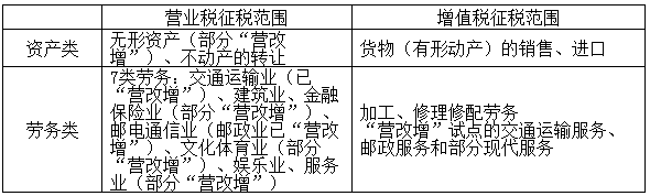 2014年1月1日起,營(yíng)業(yè)稅與增值稅的具體征稅范圍: