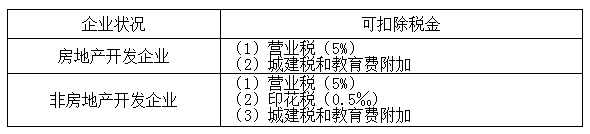包括轉(zhuǎn)讓房地產(chǎn)時(shí)繳納的營業(yè)稅、城建稅、印花稅。教育費(fèi)附加和地方教育附加視同稅金扣除。