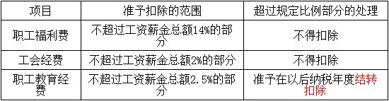 (3)這三項費用不是采用計提或預(yù)提的方法支出,而采用的是“據(jù)實支出、限額控制”的方法。其中職工教育經(jīng)費超支的,可結(jié)轉(zhuǎn)下年,用以后年度未用完的限額扣除。