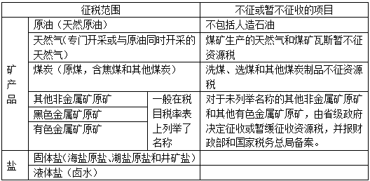 資源稅的征稅范圍分為原油、天然氣、鹽、黑色金屬礦原礦、有色金屬礦原礦、煤炭、其他非金屬礦原礦共七個稅目。