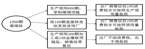 注:上述將100顆轉(zhuǎn)賣給其他首飾廠,外購的珊瑚珠不能直接進(jìn)入消費(fèi)品市場(chǎng)。