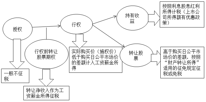 為了方便理解,對于股票期權(quán)的涉稅情況圖示如下: