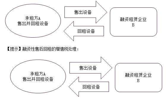 (1)融資性售后回租。是指承租方以融資為目的,將資產(chǎn)出售給從事融資租賃業(yè)務(wù)的企業(yè)后,又將該資產(chǎn)租回的業(yè)務(wù)活動(dòng)。承租方先將資產(chǎn)銷售取得資金,再支付資金將已售資產(chǎn)租回使用,其實(shí)質(zhì)屬于融資行為。