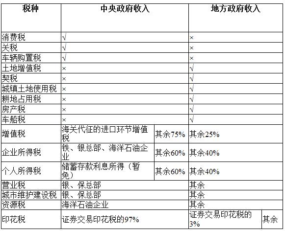 (二)中央政府和地方政府稅收收入劃分