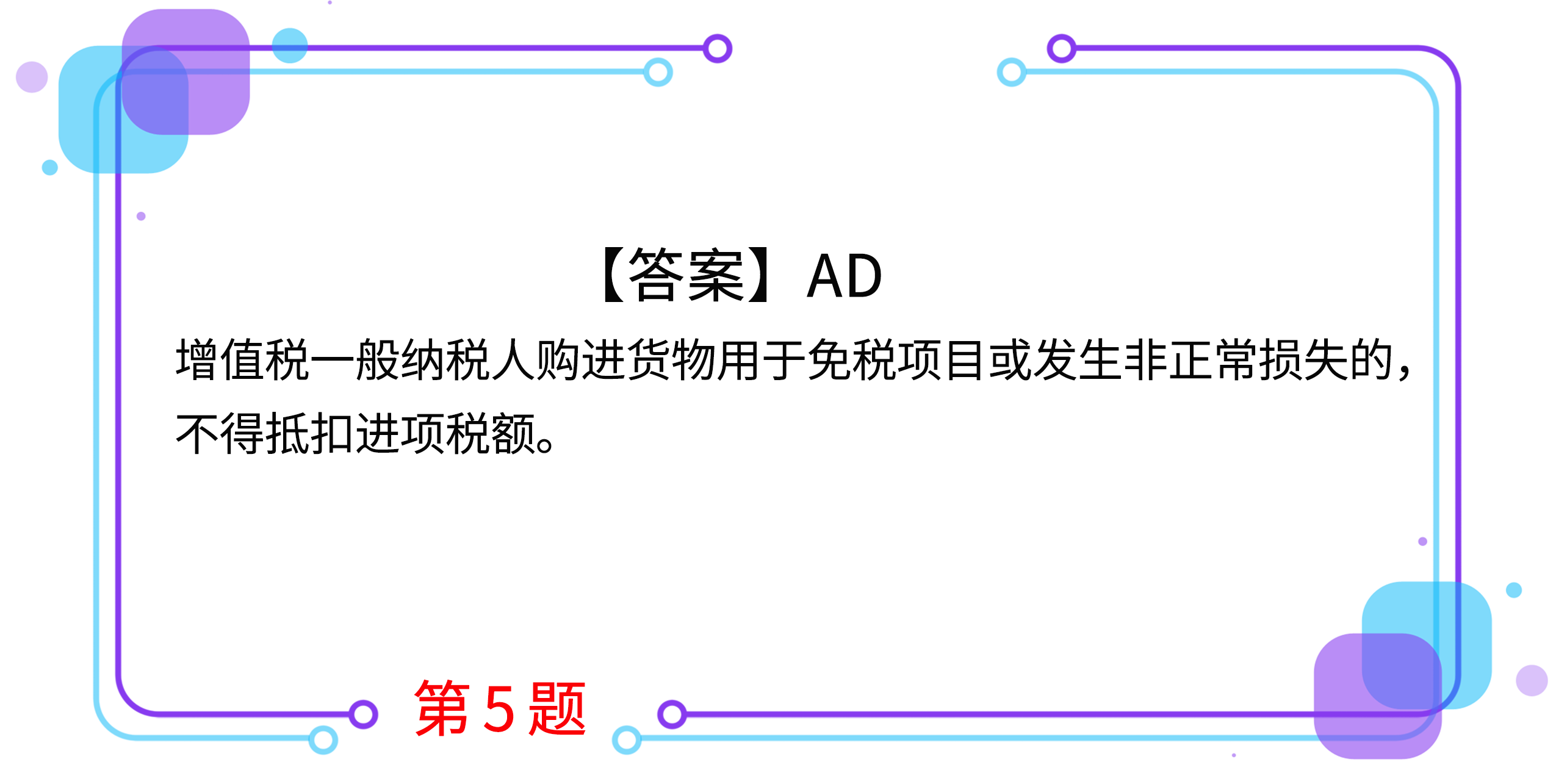 5.增值稅一般納稅人發(fā)生的下列業(yè)務(wù)中,不得抵扣外購(gòu)貨物進(jìn)項(xiàng)稅額的有(     )。