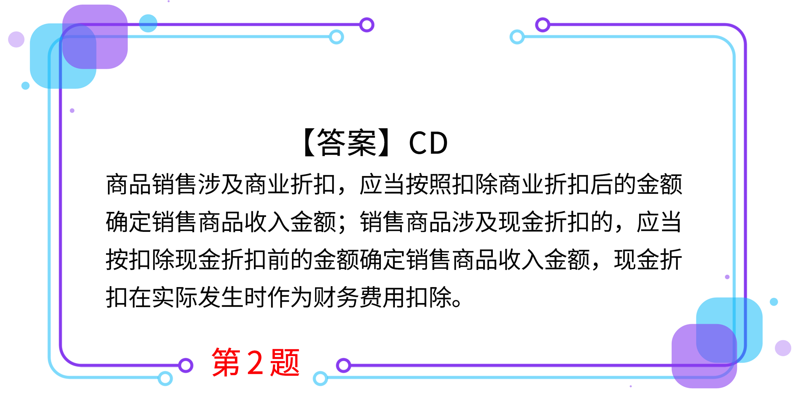 B.現(xiàn)金折扣應(yīng)當(dāng)按折扣后的金額確定商品銷售收入