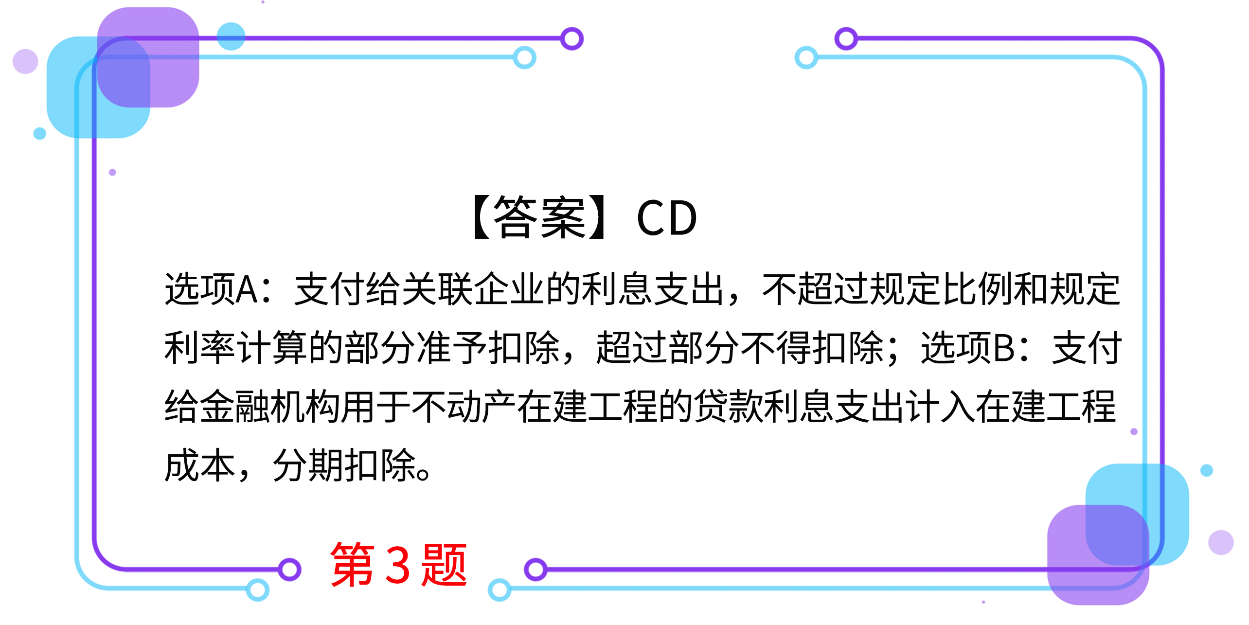 2.某企業(yè)注冊資本為3000萬元。2019年按同期金融機(jī)構(gòu)貸款利率從其關(guān)聯(lián)方借款6800萬元,借款期限一年,發(fā)生借款利息408萬元。該企業(yè)在計(jì)算企業(yè)所得稅應(yīng)納稅所得額時(shí),準(zhǔn)予扣除的利息金額為( )。