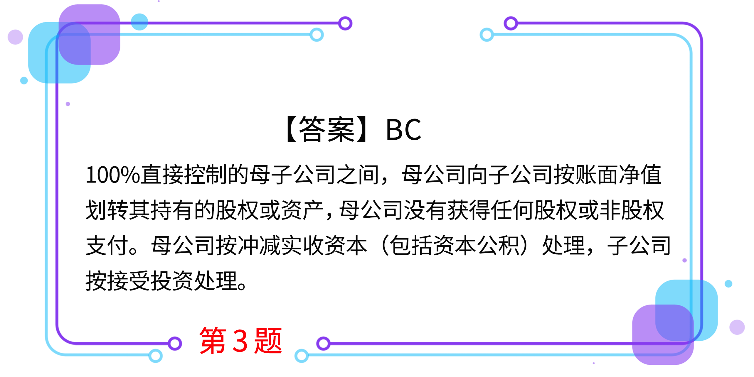 3.100%直接控制的母子公司之間,母公司向子公司按賬面凈值劃轉其持有的股權或資產,母公司沒有獲得任何股權或非股權支付。則以下符合企業(yè)所得稅相關規(guī)定的有(  )。
