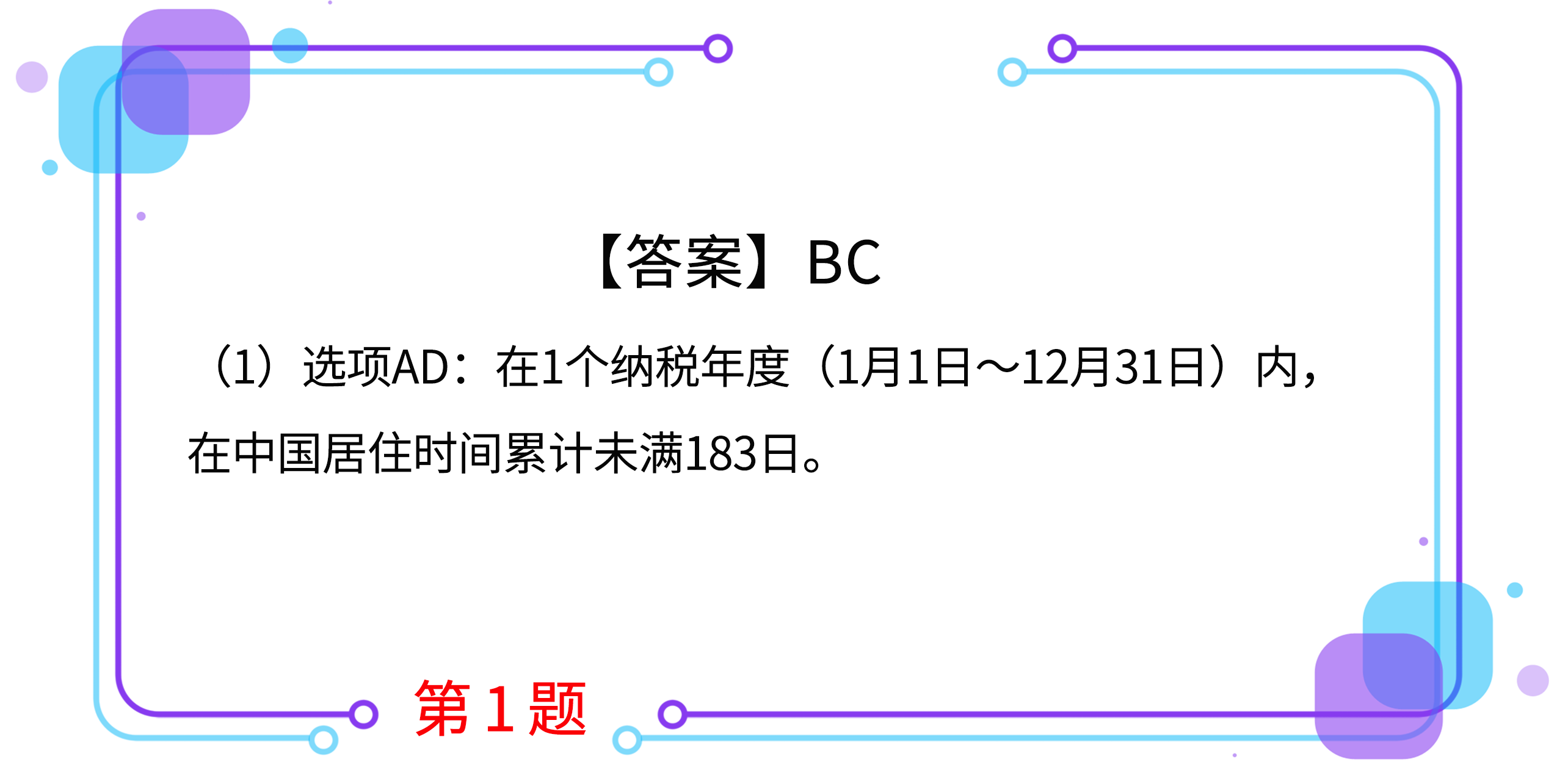 D.在中國境內(nèi)停留的當(dāng)天不足24小時(shí)的,不計(jì)入中國境內(nèi)居住天數(shù)