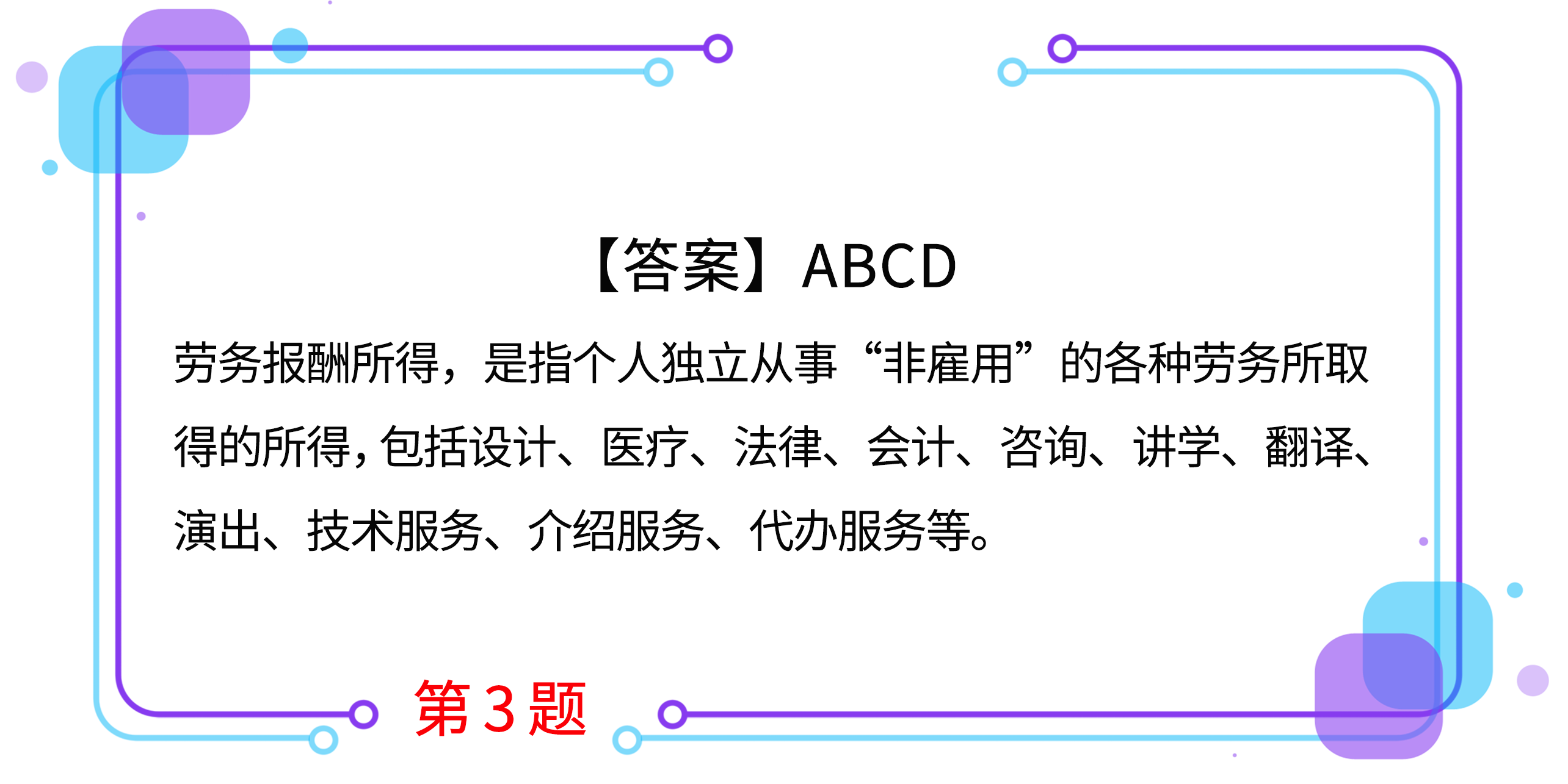3.根據(jù)個人所得稅法律制度的規(guī)定,下列個人所得中,應(yīng)按“勞務(wù)報酬所得”稅目征收個人所得稅的有( )。