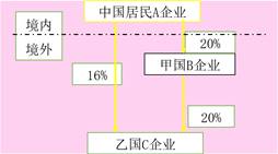 中國居民A企業(yè)直接持有甲國B企業(yè)20%股份,直接持有乙國C企業(yè)16%股份,并且B企業(yè)直接持有C企業(yè)20%股份,如下圖所示: