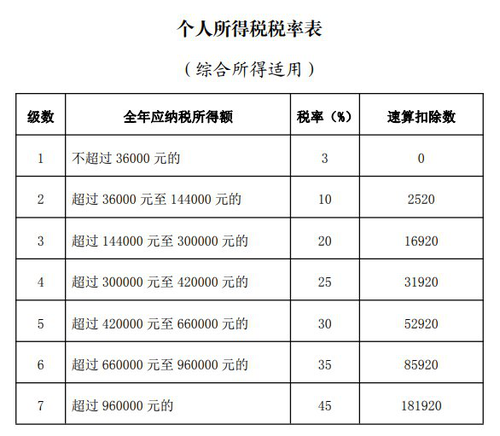 個人所得稅稅率表+個人所得稅速算扣除數(shù)