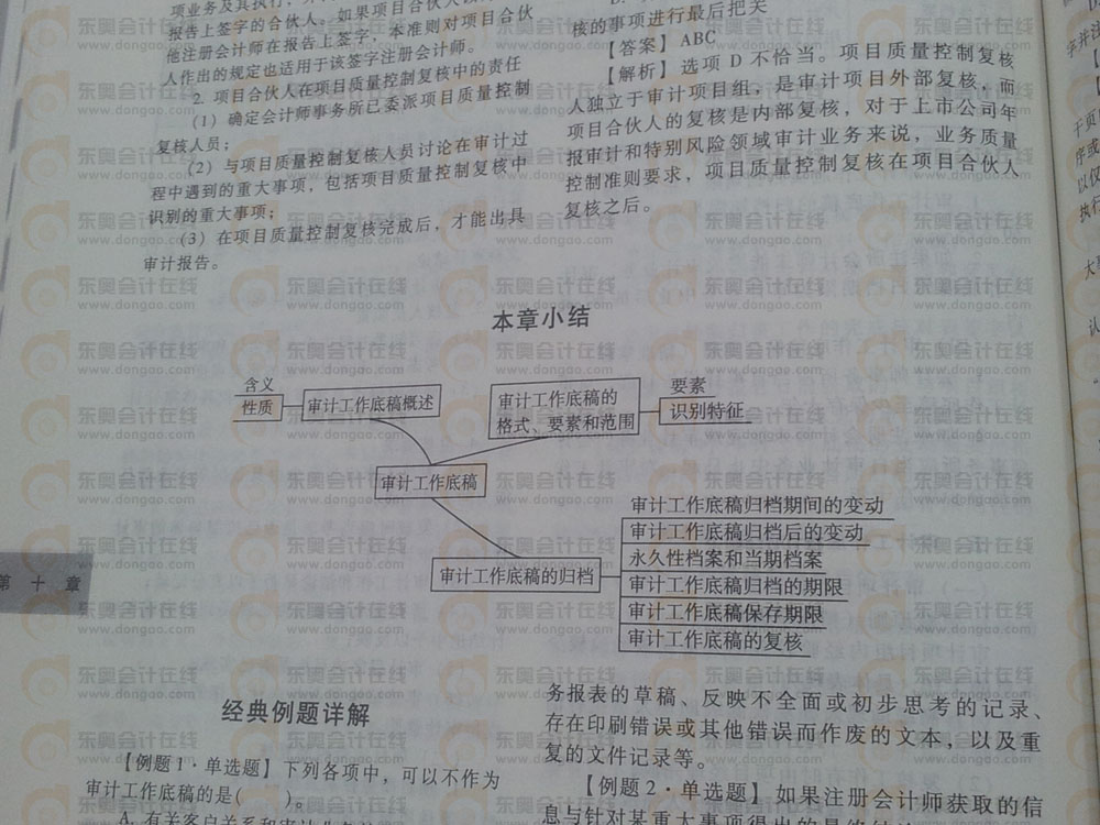 2013年注會考試《審計》第十章導(dǎo)圖解析:審計工作底稿
