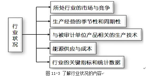 圖11-3的內(nèi)容屬于注冊會計師了解的被審計單位所在行業(yè)的“非財務信息”,也是被審計單位的外部信息。在實際審計工作中注冊會計師必須了解這些“非財務信息”,在“風險評估”的綜合題中每年都會以不同的表述形式出現(xiàn)這些“非財務信息”,不論是在實際審計工作中還在考試中,我們了解這些“非財務信息”都是為了“識別”財務報表的重大錯報風險,而且屬于必不可少的內(nèi)容。