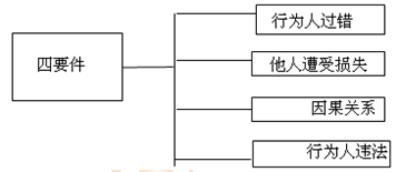 民法學(xué)界一般采納“四要件”來(lái)界定民事侵權(quán)賠償責(zé)任,“四要件”依次是: