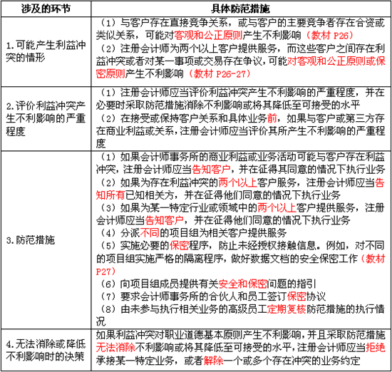 利益沖突可以從導致利益沖突的情形、評價利益沖突產生不利影響的嚴重程度、防范措施以及無法消除或降低利益沖突的四個不同環(huán)節(jié)來考慮。