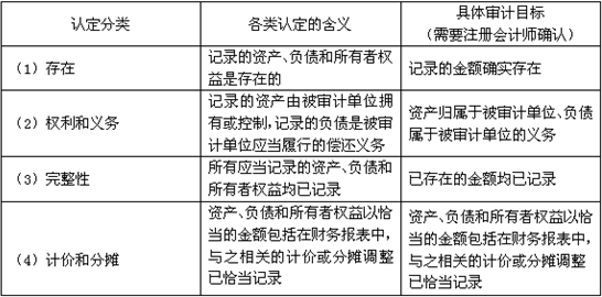 認(rèn)定與財務(wù)報表各項目的具體審計目標(biāo)密切相關(guān),注冊會計師的基本職責(zé)就是確定被審計單位管理層對其財務(wù)報表的認(rèn)定是否恰當(dāng)。