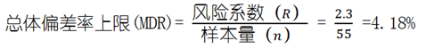 (2)在可容忍偏差率7%的情況下,總體的實際偏差率超過可容忍偏差率的風險很大,總體不能接受;