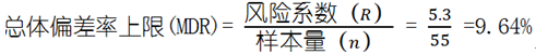 (1)總體實際偏差率超過9.64%的風險為10%;