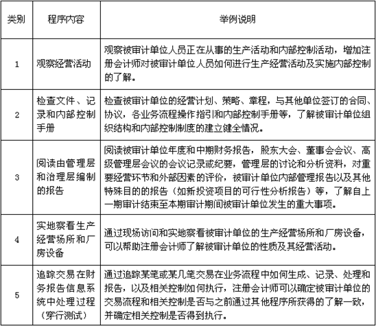 觀察和檢査程序可以支持對(duì)管理層和其他相關(guān)人員的詢問結(jié)果,并可以提供有關(guān)被審計(jì)單位及其環(huán)境的信息,具體內(nèi)容如下表: