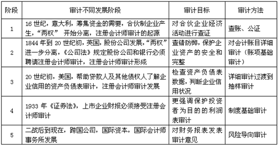 本知識點屬于《審計》科目第一章注冊會計師審計職業(yè)特點第一節(jié)注冊會計師審計的起源與發(fā)展的內(nèi)容。