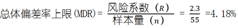 (2)在可容忍偏差率7%的情況下,總體的實際偏差率超過可容忍偏差率的風險很大,總體不能接受;