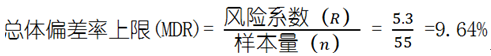 (1)總體實際偏差率超過9.64%的風險為10%;