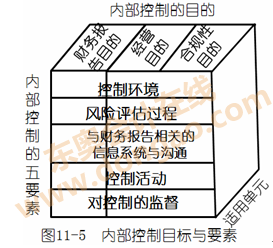 【相關(guān)說明1】根據(jù)審計準則對內(nèi)部控制的定義,內(nèi)部控制的目標和要素如圖11-5所示: