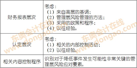 2.結(jié)合對擬測試的相關(guān)控制的考慮,將識別出的風(fēng)險與認(rèn)定層次可能發(fā)生錯報的領(lǐng)域相聯(lián)系;