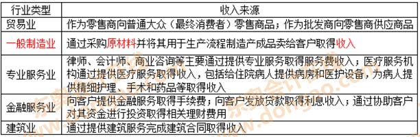 不同行業(yè)類(lèi)型的主要收入來(lái)源