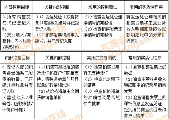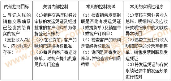 【知識(shí)點(diǎn)】:銷售交易的內(nèi)部控制目標(biāo)、關(guān)鍵內(nèi)部控制和審計(jì)測試一覽表