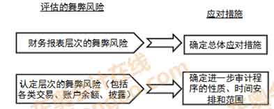 2.注冊會計師針對舞弊風險,確定總體應對措施,如下圖所示:
