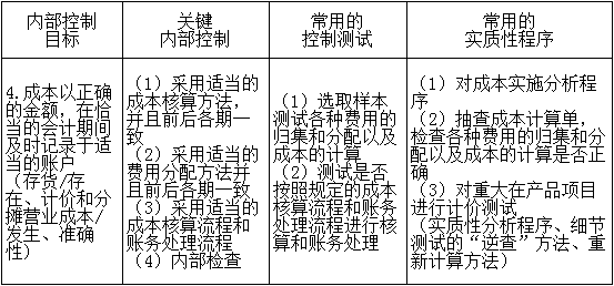 (一)成本會計制度的內(nèi)部控制目標、關鍵內(nèi)部控制和審計測試一覽表