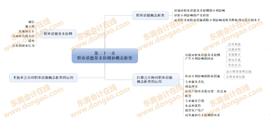 2014注會《審計》第二十一章職業(yè)道德基本原則和概念思維導圖
