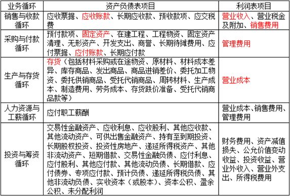 【知識(shí)點(diǎn)】:業(yè)務(wù)循環(huán)與主要財(cái)務(wù)報(bào)表項(xiàng)目對(duì)照表