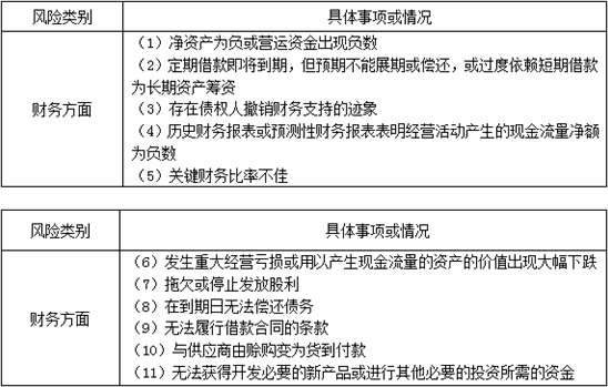 【知識點(diǎn)】:識別對持續(xù)經(jīng)營假設(shè)產(chǎn)生重大疑慮的風(fēng)險(xiǎn)