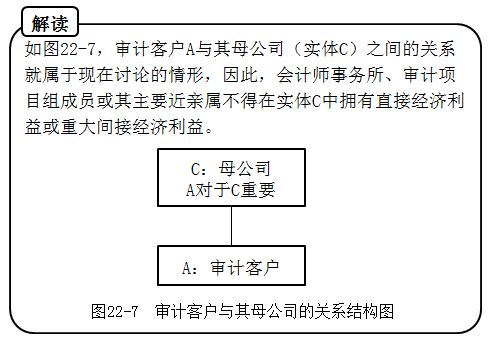 (二)當(dāng)一個實(shí)體在審計客戶中擁有控制性的權(quán)益,并且審計客戶對該實(shí)體重要時,會計師事務(wù)所、審計項目組成員或其主要近親屬不得在該實(shí)體中擁有直接經(jīng)濟(jì)利益或重大間接經(jīng)濟(jì)利益