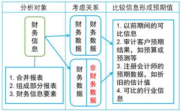 分析程序是指注冊會計(jì)師通過分析不同財務(wù)數(shù)據(jù)之間以及財務(wù)數(shù)據(jù)與非財務(wù)數(shù)據(jù)之間的內(nèi)在關(guān)系,對財務(wù)信息作出評價。分析程序還包括在必要時對識別出的、與其他相關(guān)信息不一致或與預(yù)期值差異重大的波動或關(guān)系進(jìn)行調(diào)查,如下圖所示。