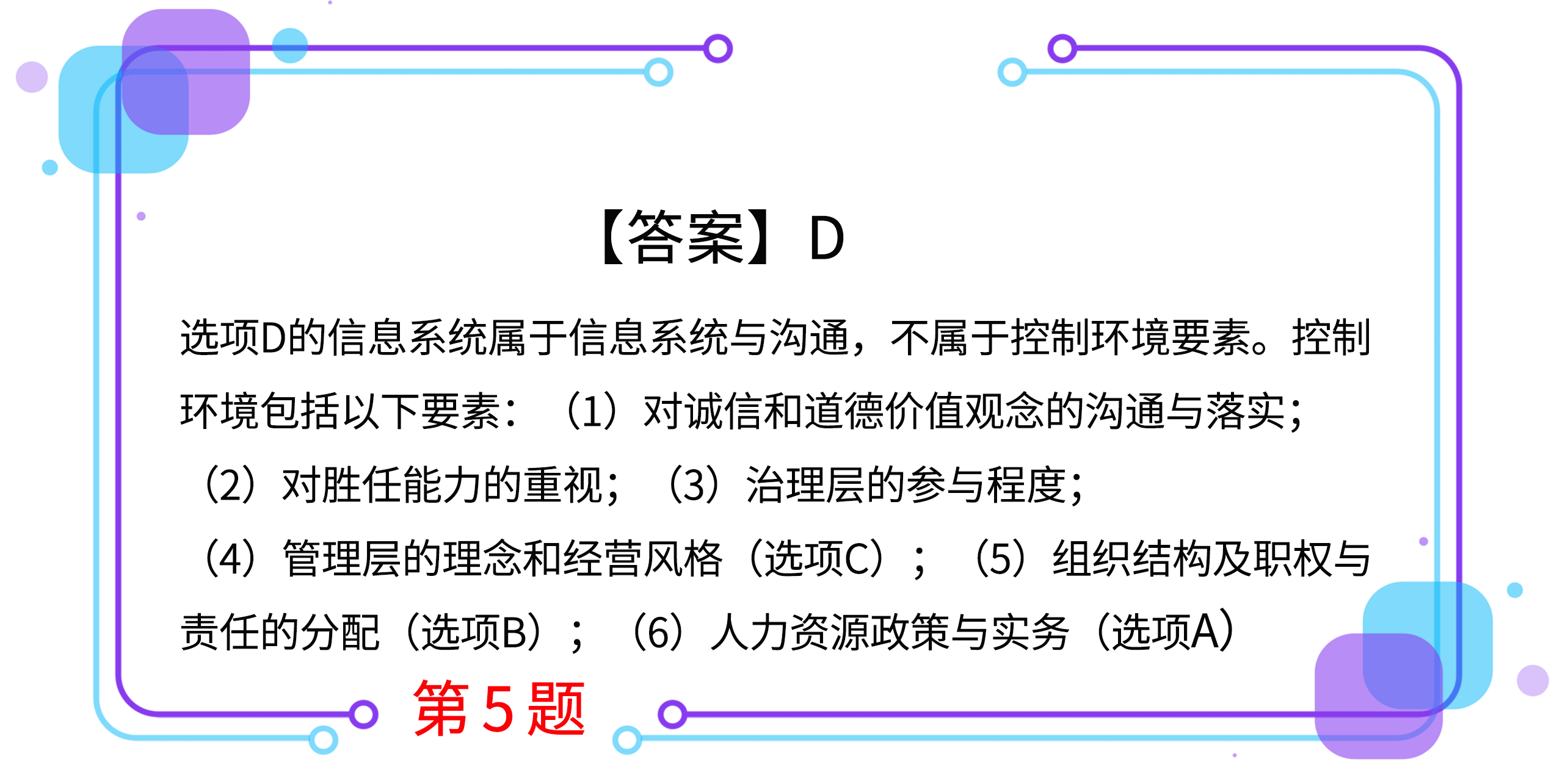 5.下列各項中,不屬于控制環(huán)境要素的是( )。(2013年)