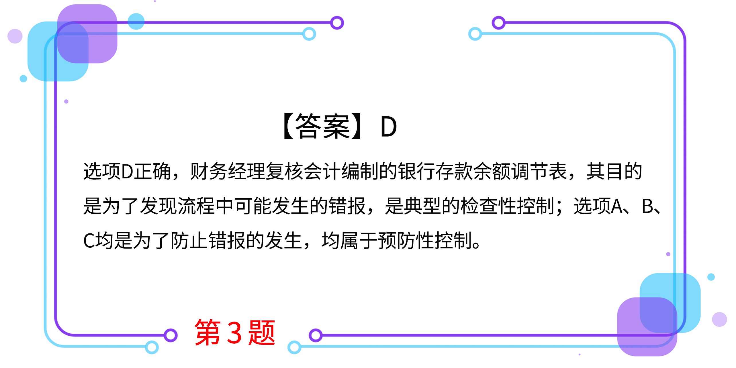 3.下列各項控制中,屬于檢查性控制的是( )。(2018年)