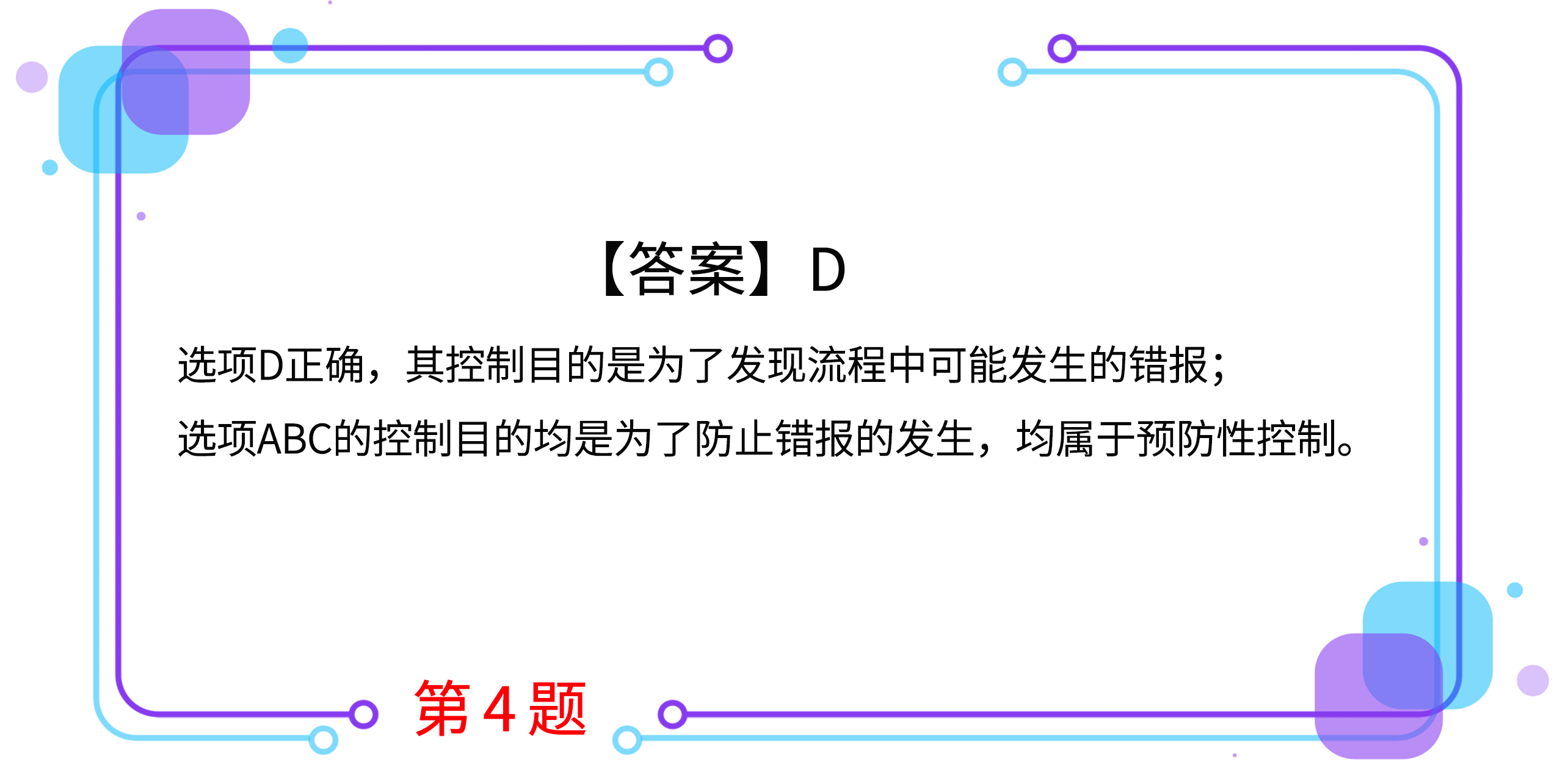 4.下列控制活動中,屬于檢查性控制的是( )。(2014年)