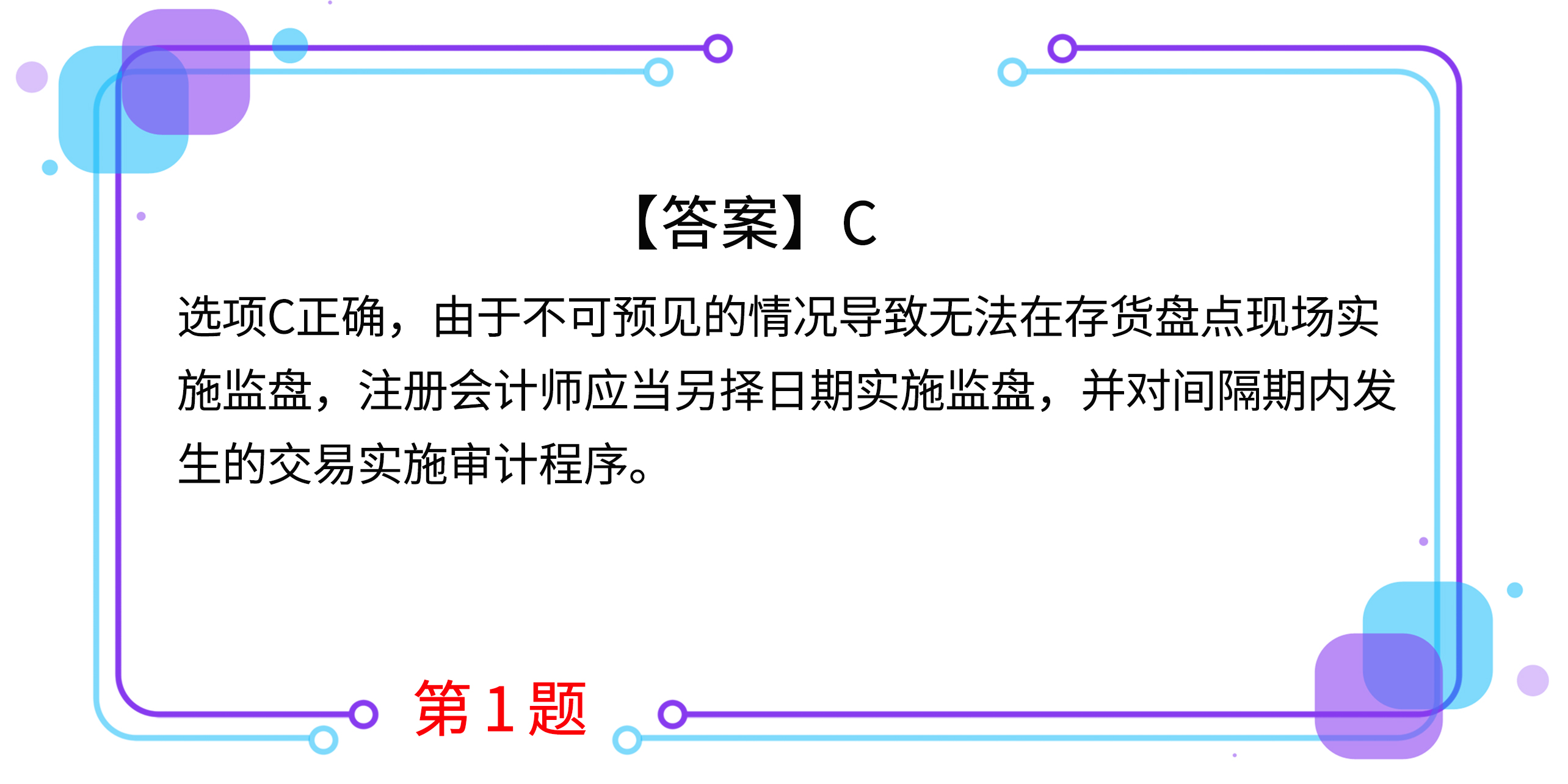 1.由于天氣原因?qū)е伦詴嫀煙o法在存貨盤點現(xiàn)場實施監(jiān)盤,以下應(yīng)對措施中,正確的是( )。