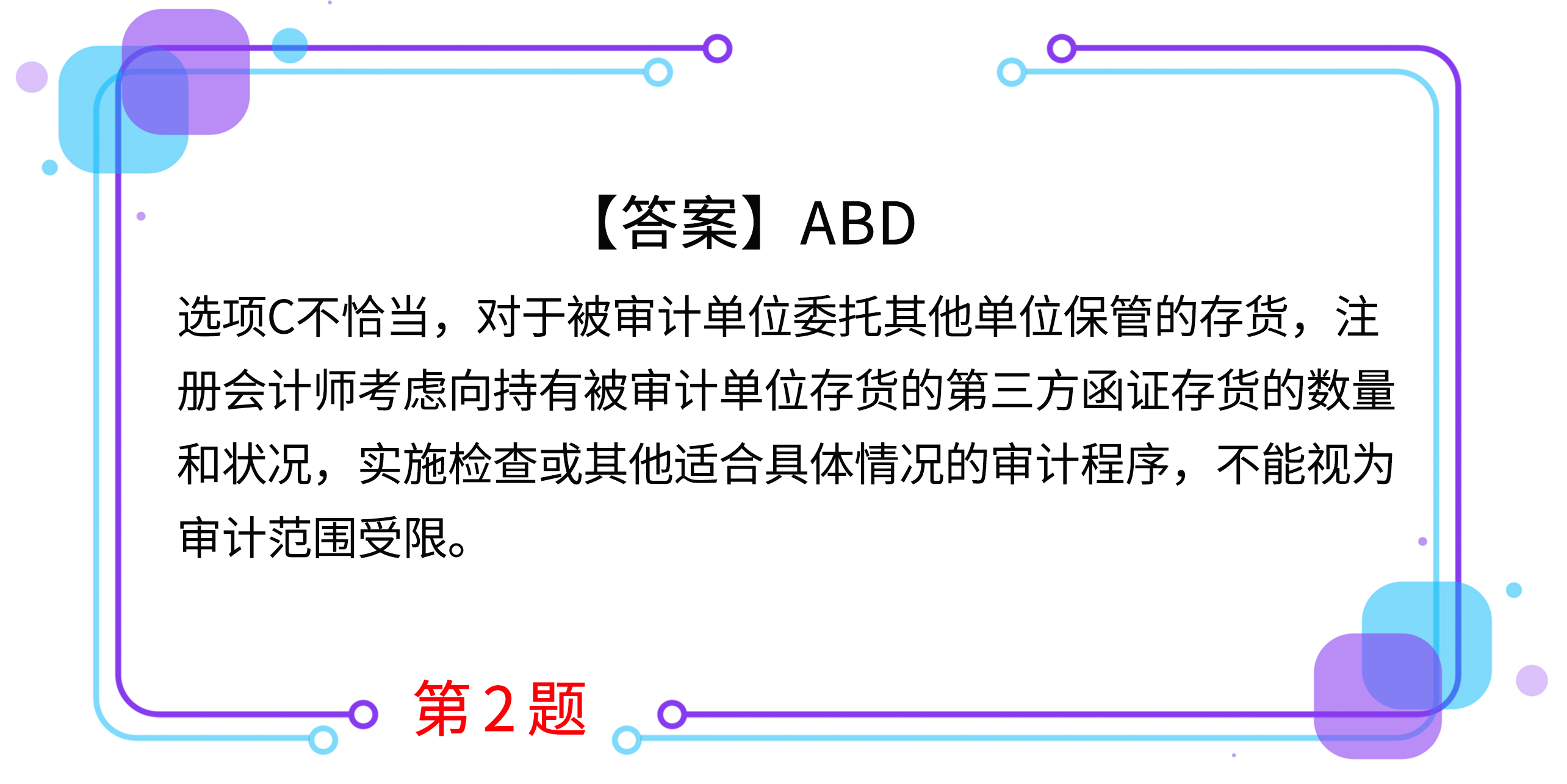 2.在考慮被審計單位委托其他單位保管的存貨時,注冊會計師的做法恰當(dāng)?shù)挠? )。
